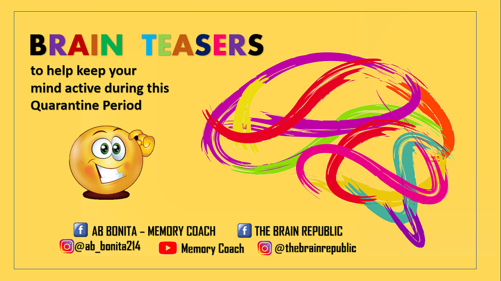 Starting Today, we will be posting Brain Teasers and other activities. This is our own little way to help keep your mind active and help keep you going during this Quarantine Period. 😀