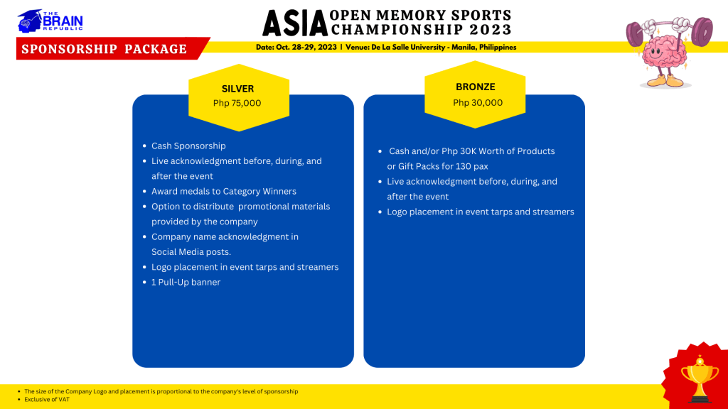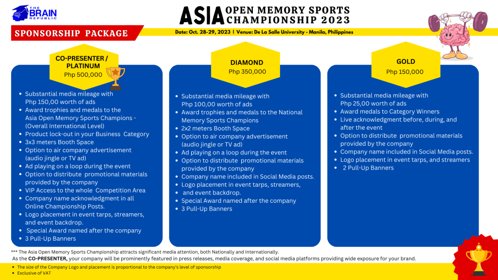 ASIA Open Memory Sports Championship 2023 – Sponsorship Package