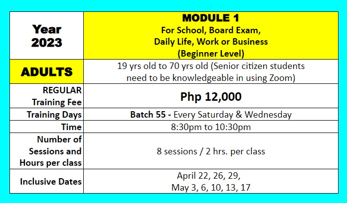 We are also offering Private (1-on-1) classes. Check the link below for more details regarding our Private training program with Customized Topics and Schedules, specifically for your personal needs, or to address your time incompatibility: