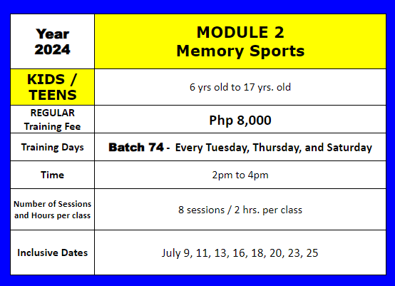Led by Coach AB Bonita, TBR’s Founder / Head Instructor and President of the Philippine Mind Sports Association, we have conducted Memory Enhancement Seminars/Workshops across the globe. The Team has coached several professionals such as Lawyers,