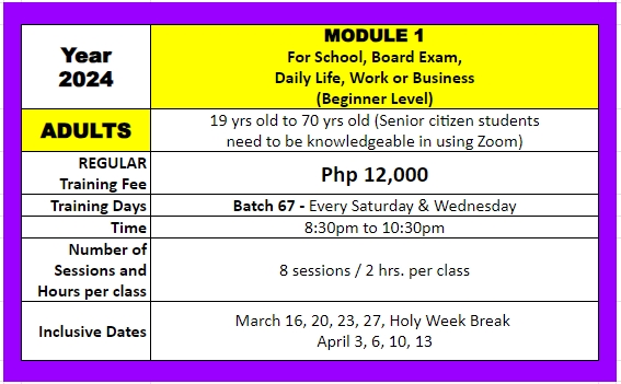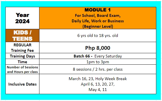 GO PREMIUM and Worry No More! We will be sending you a private recorded video link of all our classes for an additional fee of only Php 3,000 pesos for the whole 8 sessions, and receive NON-EXPIRING private video links of your batch that you can pause, review, and continue to replay endlessly. So, no need to re-enroll for a refresher program in case the student wants to review the lessons. (Quick note: Our lessons are copyrighted and for the personal use of the enrolled student only).