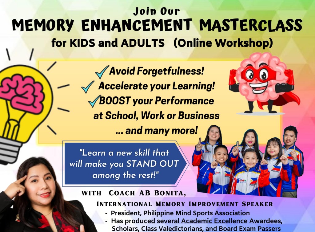 Led by Coach AB Bonita, TBR’s Founder / Head Instructor and President of the Philippine Mind Sports Association, we have conducted Memory Enhancement Seminars/Workshops across the globe. The Team has coached several professionals such as Lawyers,