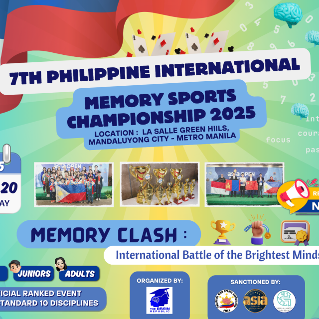 The much-awaited Memory Sports competition of the year is back! 7th Philippine International Memory Sports Championship 2025 Face-to-face event using the GAMA Online PlatformVenue: La Salle Green Hills, Mandaluyong CityMetro Manila, PhilippinesSeptember 20, 2025 | Saturday NEURONS READY… GO! Did…